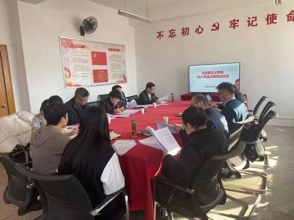 为进一步推动金年会诚信信誉至上科研工作,提升重点项目立项水平,2022年2月24日上午,马院在学院会议室召开2022年度重点项目申报论证会。东北大学秦皇岛分校社会科学研究院蔡禹龙博士、我校职业教育研究院王剑锋副院长作为专家出席了论证会。学校科研处人文社科办公室王妹娟博士、金年会诚信信誉至上领导班子成员、项目申报教师参加了论证会。