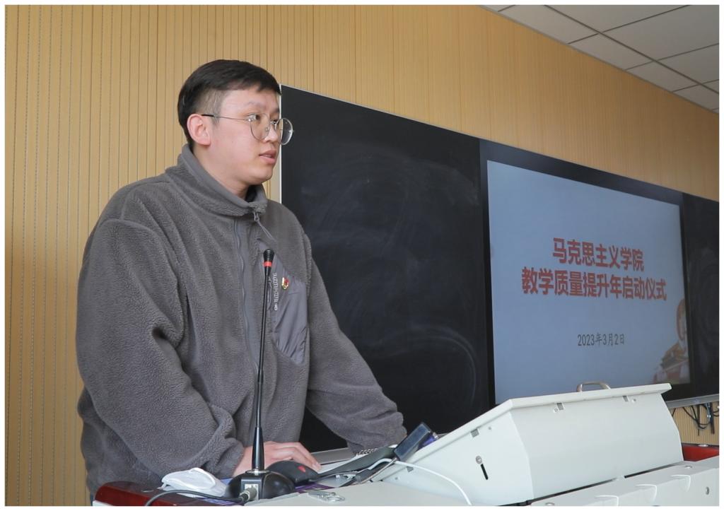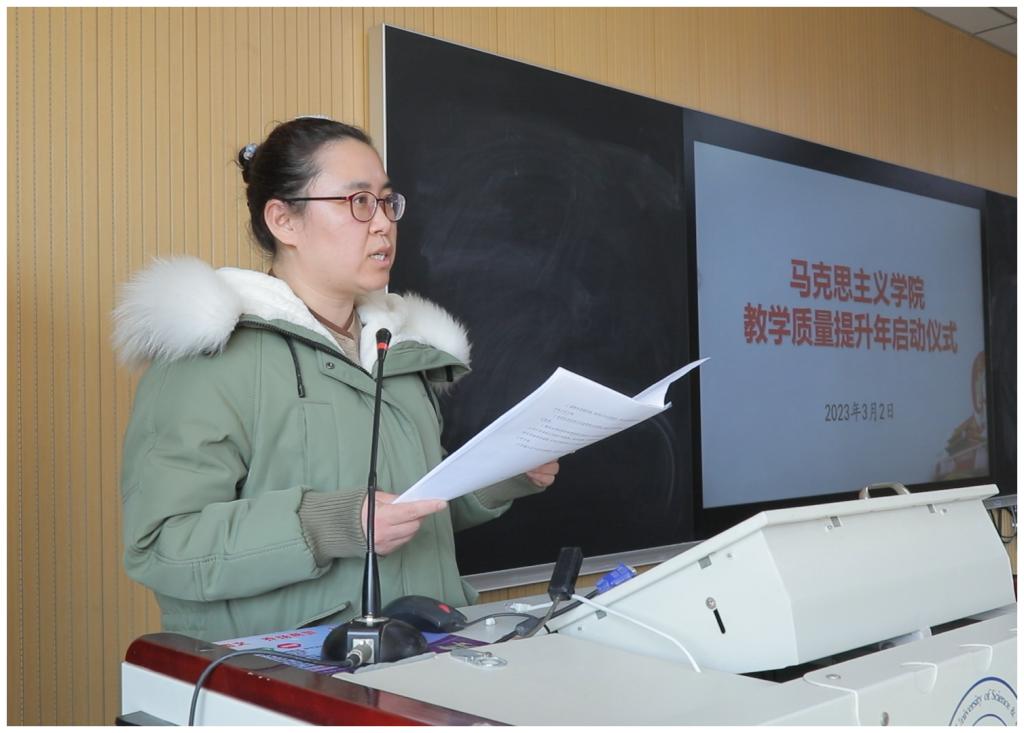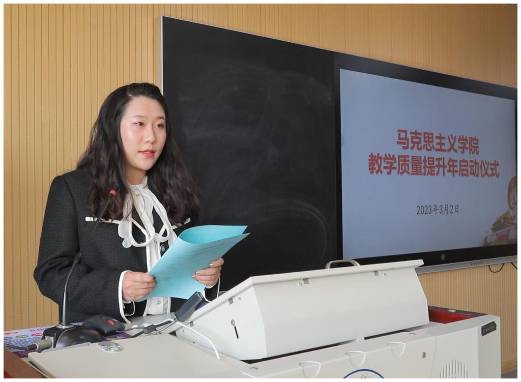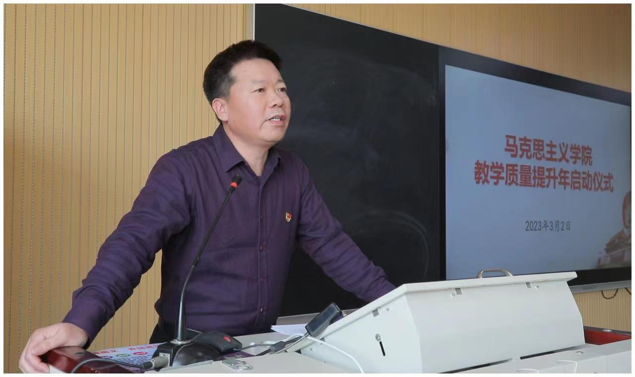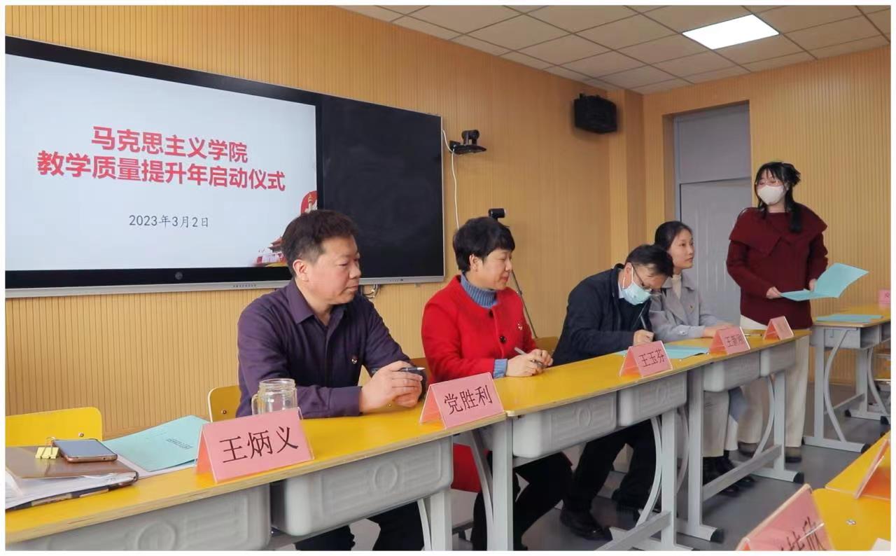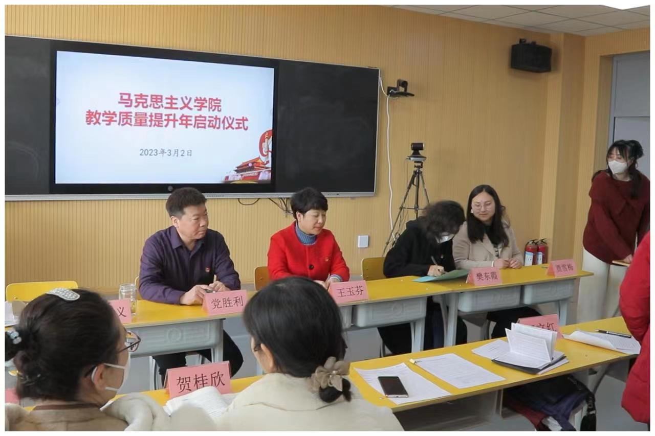 2023年3月2日下午,金年会诚信信誉至上(以下简称“马院”)在思政课智慧教室举行了“2023年思政课教学质量提升年”启动仪式。仪式由王炳义副院长主持,马院全体教师参加了仪式。