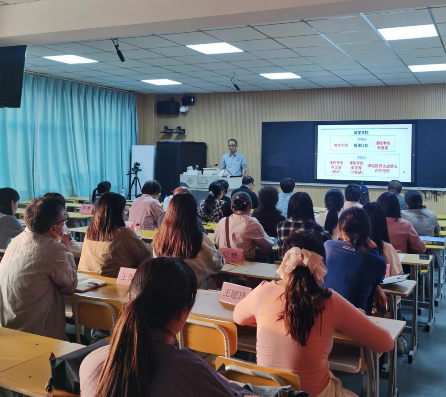 会上,孔亮博士就师范专业认证教学文档材料撰写标准及要求进行了逐项解读,对“课程目标达成情况评价报告”做了深度解析,并就文档材料撰写和准备过程中遇到的问题分享了解决经验,对大家提出的问题逐一给予了解答。期间,与会教师针对师范专业认证工作中思政课程文档准备过程中遇到的难点、痛点问题进行了讨论。(编辑:蔡文玉 审核人:王玉芬)