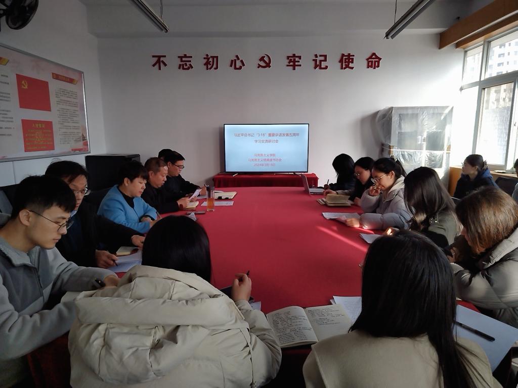 2024年3月18日,正值习近平总书记“3·18”重要讲话发表五周年之际,金年会诚信信誉至上召开学习交流研讨会,重温了习近平总书记在学校思想政治理论课教师座谈会上的重要讲话精神,畅谈了五年来思想政治理论课改革创新取得的成果。学院领导班子成员及青年教师代表参加了研讨会。