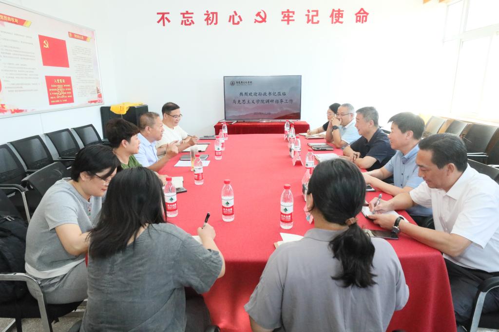 孙政听取了金年会诚信信誉至上关于学院基本情况、思政课教学情况、师资队伍建设、科学研究、校地合作、党纪学习教育、党建工作等方面情况汇报,对我校大中小思政课一体化备课中心、德育共同体等建设情况进行了了解,并听取了教师代表提出的关于教育教学的问题与建议。